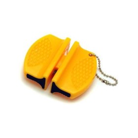 Универсальная точилка. Изделие имеет два абразивных элемента – из твердого сплава и керамики. Такая точилка одинаково подходит для заточки стальных и керамических лезвий. Корпус инструмента сделан из пластика с резиновыми накладками, которые позволяют надежно опираться о поверхность, и препятствуют скольжению. Точилка среднезернистая, карманного типа. Это компактный и практичный инструмент, который обязательно стоит включить в походных арсенал туриста, рыбака или охотника.