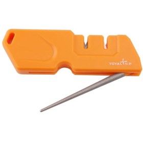 Многофункциональная складная точилка с алмазным стержнем и вставками из карбида вольфрама и керамики. Карбидный абразив применяется для грубых заточек, в случае, когда лезвие сильно затупилось или даже имеет неровную кромку. Керамика предназначается для финишной мягкой заточки. Алмазный стержень подходит для заточки ножей с серрейторной (пилообразной) заточкой, а также любых других лезвий из стали, керамики, стекла или камня.