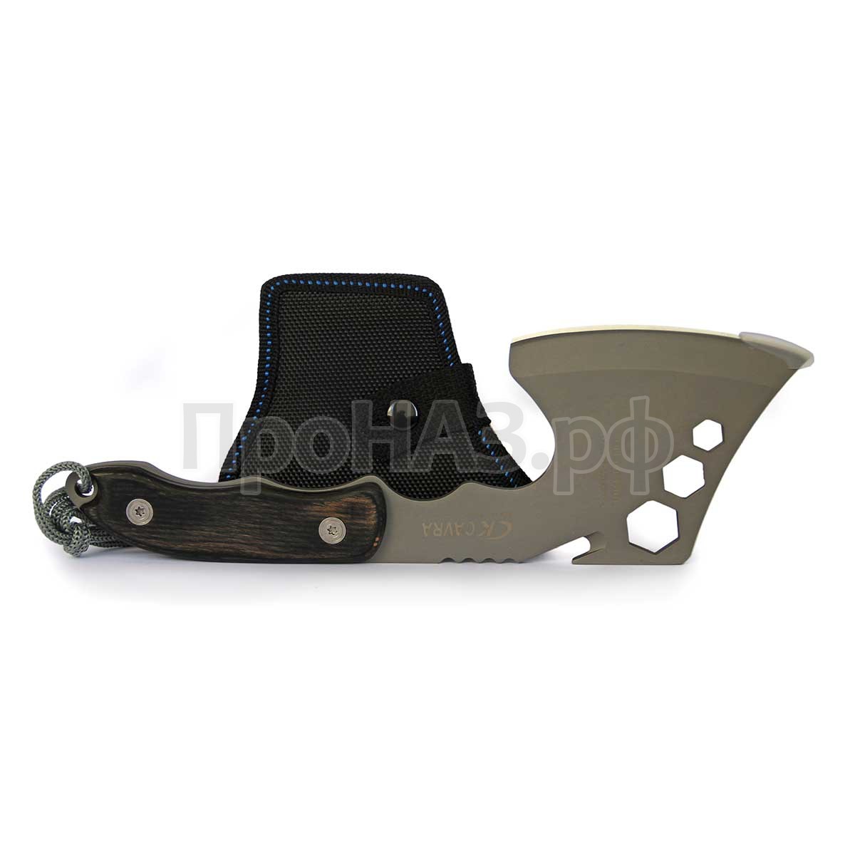 Надёжный топорик выживальщика, толстая высококачественная сталь, чехол для ношения на поясе, рукоять - деревянные накладки, отверстие для темляка