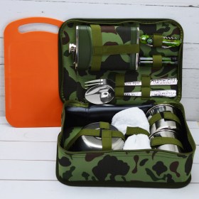 Прекрасный набор посуды для двоих, незаменимый в походе. Посуда сделана из нержавеющей стали марки AISI 304, которая является кислотостойкой и выдерживает краткосрочное поднятие температуры до 900 градусов по Цельсию.