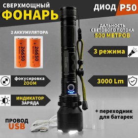 Источник питания – перезаряжаемый аккумулятор Li-ion -26650;