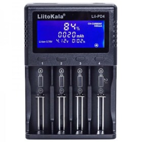 Данная модель может работать с различными типами цилиндрических аккумуляторов - от АА до С(R14) и от 10440 до 26650. Зарядное устройство Liitokala Lii PD4 оснащено большим дисплеем с подсветкой, на котором отображается тип заряжаемого аккумулятора, уровень заряда в %, ёмкость, напряжение, время заряда, зарядный ток, а также номер канала.