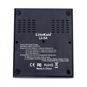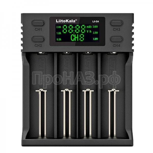 Зарядное устройство LiitoKala Lii-S4 (Черный) - универсальное, четырех-канальное, автоматическое зарядное устройство, совместимое практически со всеми цилиндрическими аккумуляторами, тем самым устраняющее необходимость использования нескольких зарядных устройств. Зарядное устройство Liitokala Lii S4 оснащено контрастным цифровым дисплеем, на котором отображается накопленная ёмкость, напряжение, ток заряда, тип аккумулятора, время работы и номер канала. Ток заряда Вы сможете задавать самостоятельно в диапазоне от 0.5 до 2 А.