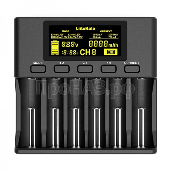 - Напряжение и ток заряда: для LiFePO4 3.65V: 500mA*6 / 700mA*6 / 1000mA*6 / 2000mA*3
