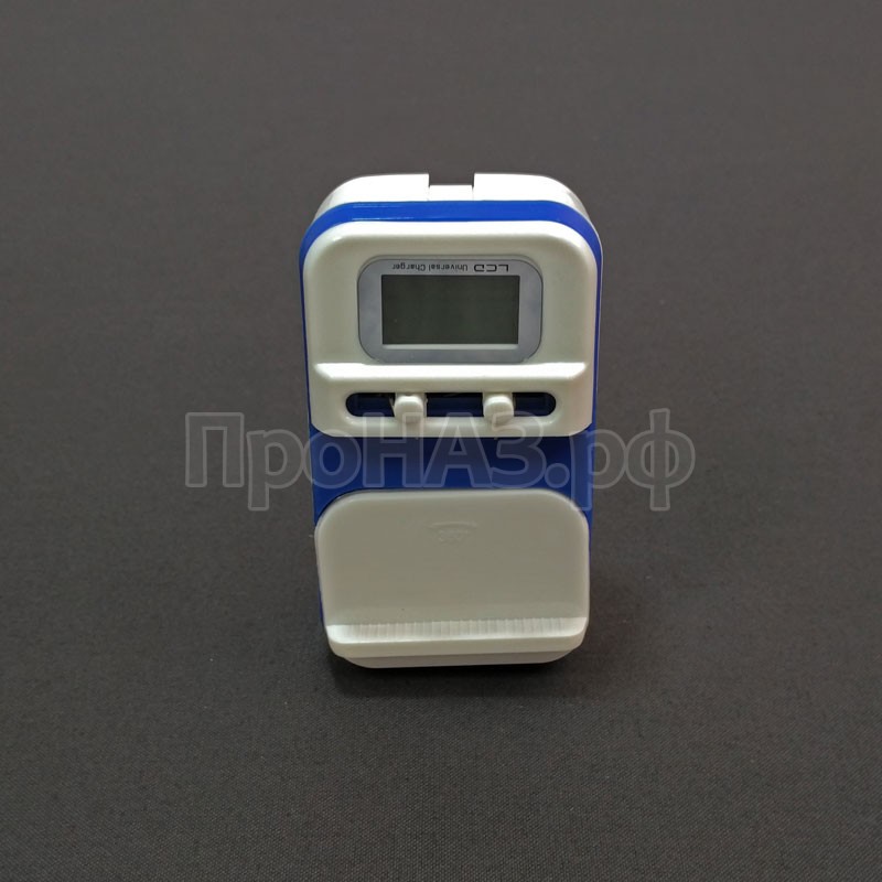 Универсальное сетевое и автомобильное зарядное устройство (лягушка) CH-988 с дисплеем и USB портом.