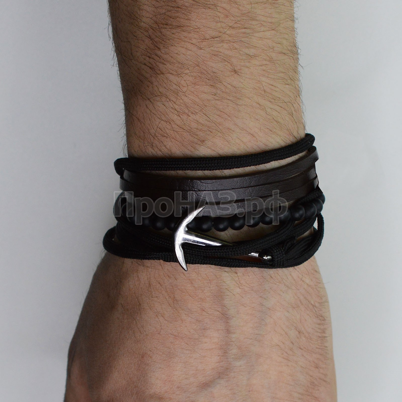 Стильный кожаный мужской браслет "Якорь" станет отличным аксессуаром для любого мужчины