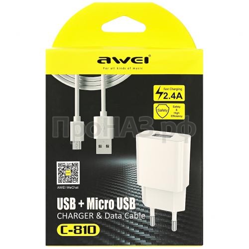 Универсальное сетевое зарядное устройство с поддержкой быстрой зарядки гаджетов и током зарядки до 2,4 А.