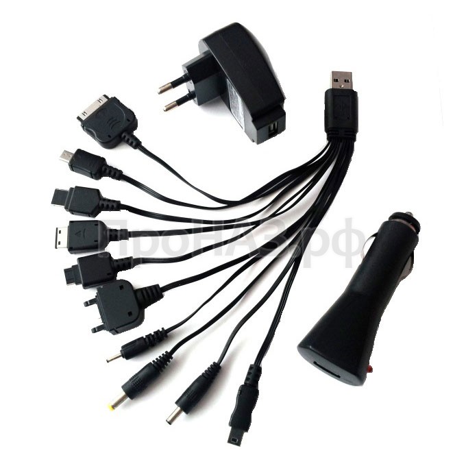 Универсальная зарядка ZC-001 ( YXT-030 ) СЗУ + АЗУ + USB переходники для всех сотовых , Apple , HTC , PSP...итд. электрический адаптер