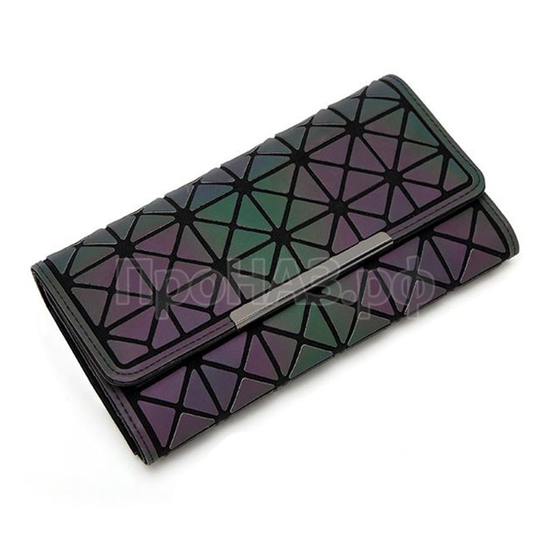 Орнамент геометрических фигур и люминесцентное свечение делают этот кошелек узнаваемым и популярным. Здесь есть 3 больших отделения и закрывающееся на молнию отделение дляя мелочи. Также в кошельке предусмотрены кармашки для кредитных карт, фотографий и визиток.