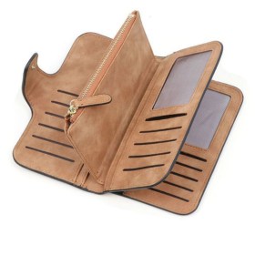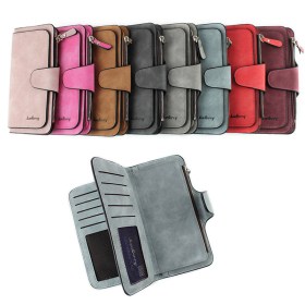 Элегантный и стильный аксессуар с большим выбором расцветок. В качестве сырья используется высококлассная PU замша, а функциональный дизайн идеально подходит для динамичной жизни в современном мегаполисе. Портмоне имеет 14 отделений для банковских карт, 2 отделения под права или фотографию, 5 узких отделений для купюр и одно большое отделение на молнии, куда можно положить монеты, ключи, помаду или маленький телефон.